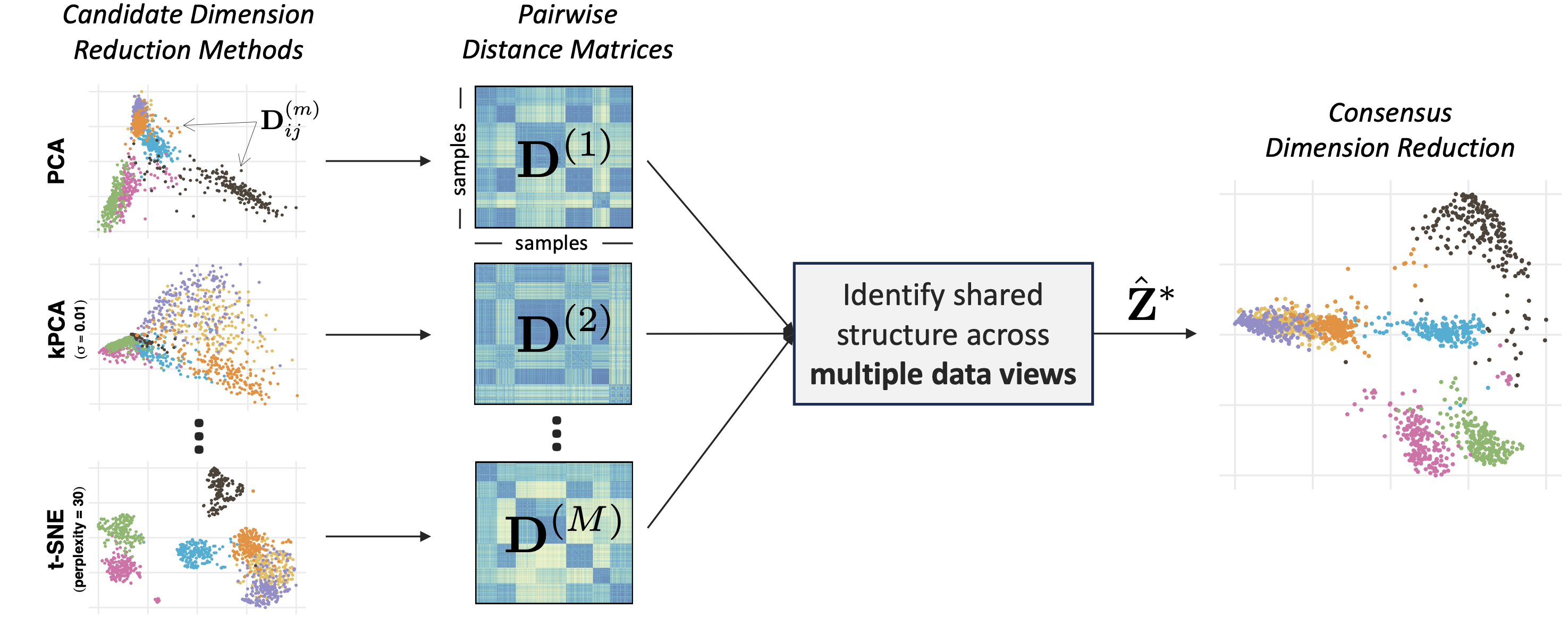 For more details, check out An, B., Tang, T. M. “Consensus dimension reduction via multi-view learning.” (2025).